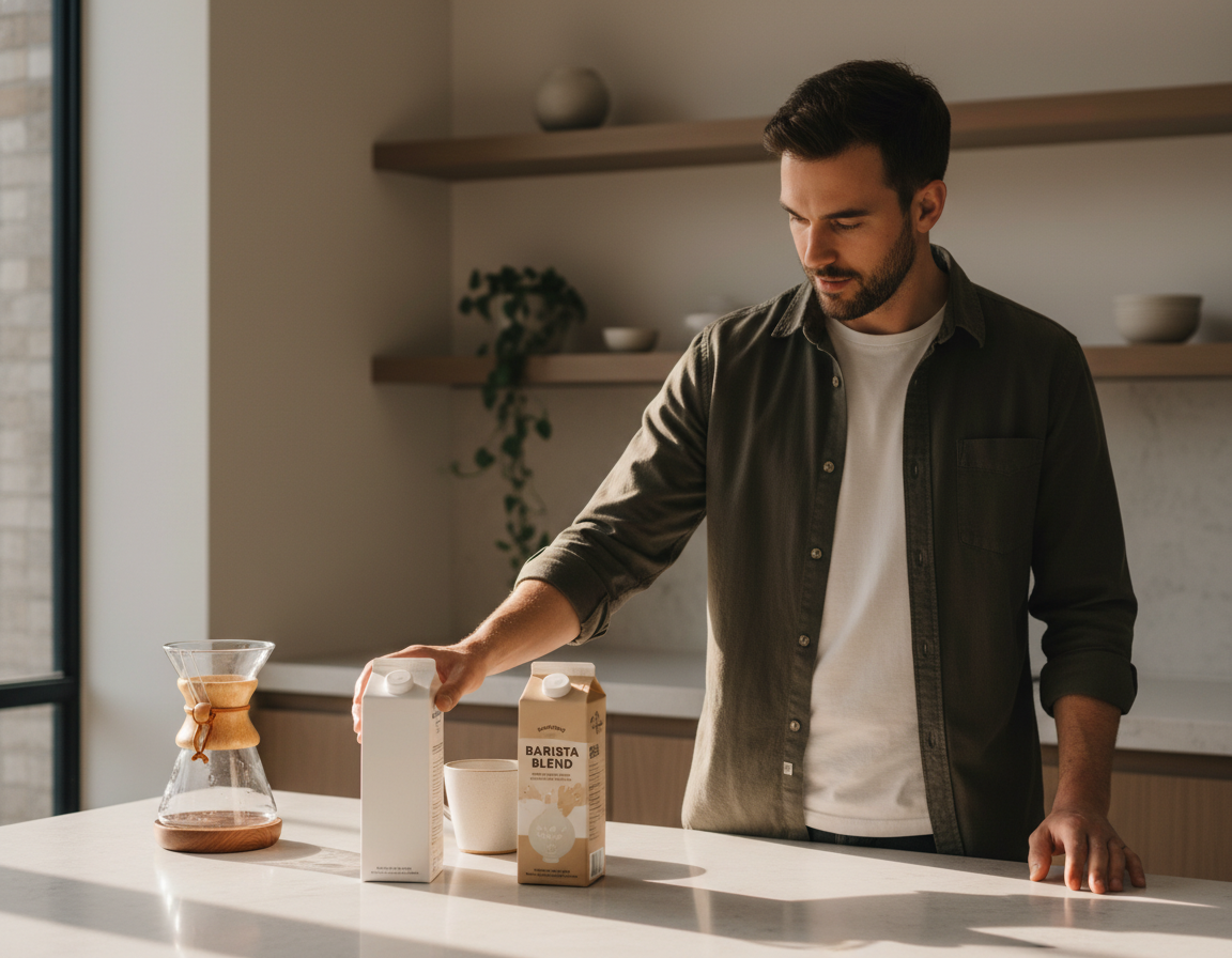 Samostatnou kapitolou jsou rostlinné alternativy. Tady je nejdůležitější jedna věc: ne každé rostlinné mléko je vhodné do kávy stejně dobře. Největší smysl mají „barista“ verze, protože obsahují stabilizátory a bývají upravené tak, aby se v kávě nesrážely a lépe pěnily. Sójové mléko pění dobře díky vyššímu obsahu bílkovin, ovesné bývá chuťově a texturou blízko kravskému mléku, zatímco mandlové bývá vodnatější a pěna je méně stabilní.