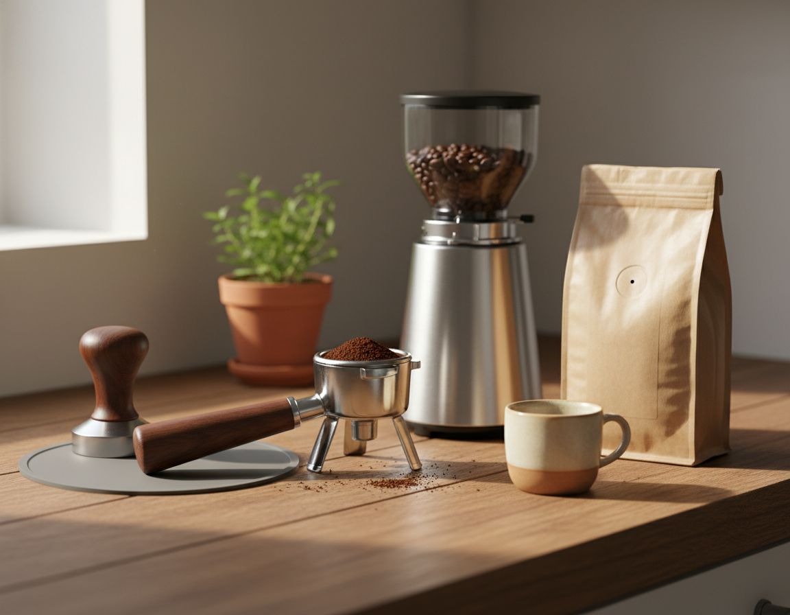 Právě tady je dobré rozbít jeden častý mýtus: u tamperu nejde hlavně o to, jak silně zatlačíte. Důležitější je tampovat rovně, klidně a hlavně opakovatelně. Pro domácí praxi to znamená jednoduchou věc: není potřeba dělat z tampování silový výkon, ale naučit se dělat ho pokaždé stejně.